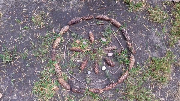 En het voelt alsof ik een klein kunstwerkje in de natuur achterlaat. Voor alle wezens, klein en groot, die daar wonen of langskomen. Voor die willekeurige nietsvermoedende voorbijganger die zijn oog er toevallig op laat vallen. Die daardoor misschien ook meer in het moment kan zijn doordat hij zich bewuster wordt van zijn omgeving.